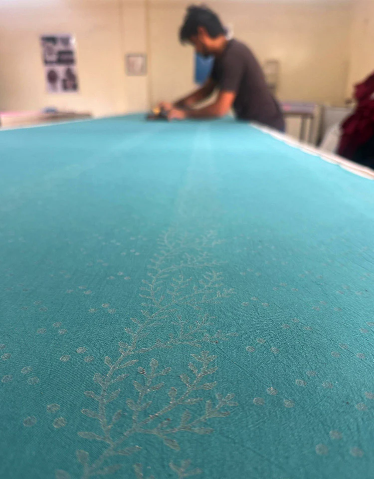 Frangipani’s Freshness Teal Green Block Printed Top - MMG